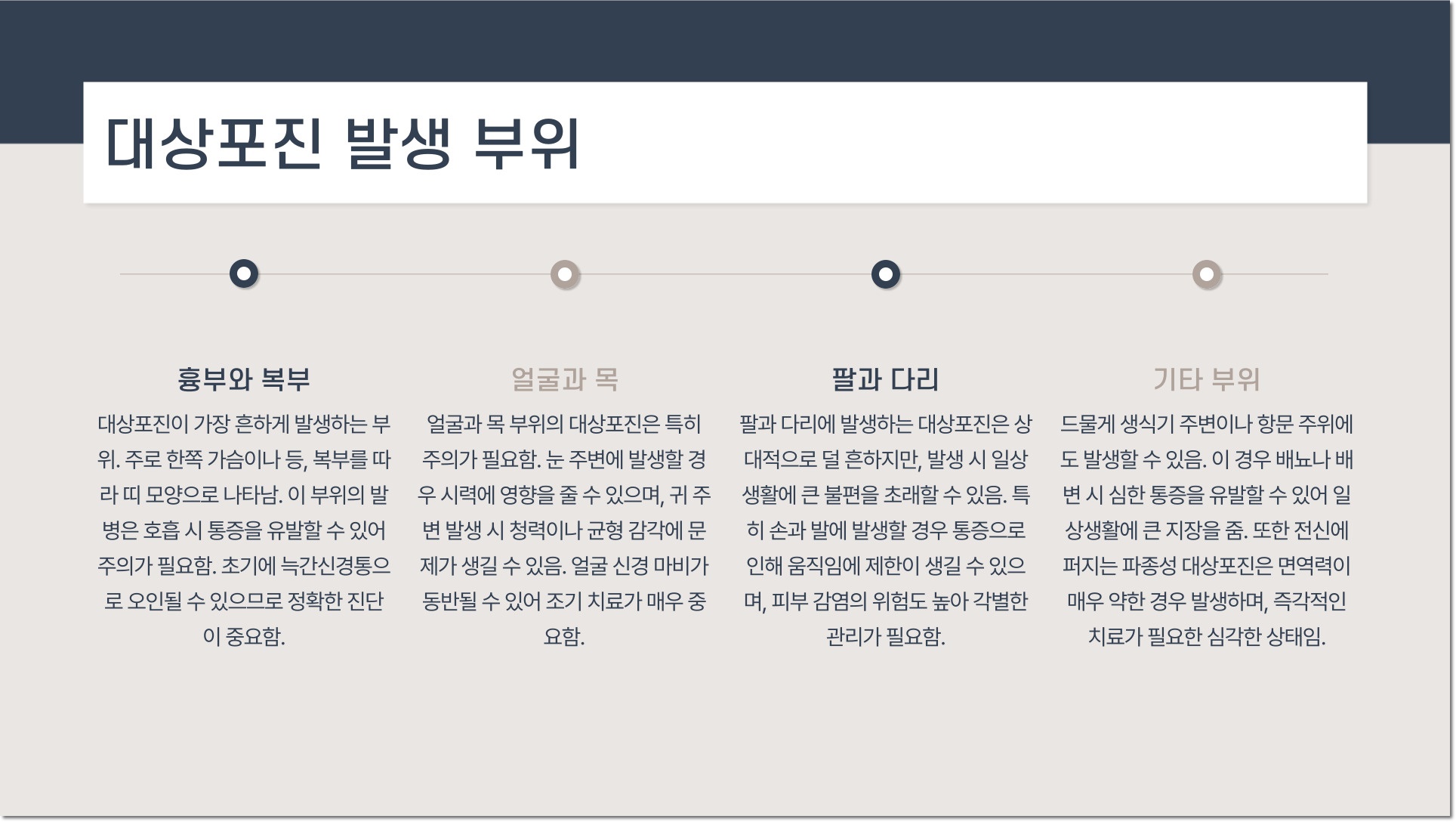 요즘 조금 쌀쌀해진 날씨에 몸이 찌뿌둥하신 분들 많으시죠? 이런 날씨에는 건강이 더 중요해지는데요. 오늘은 여러분과 함께 잘 모르시면 걱정될 수 있는 대상포진에 대해 알아보려고 해요. 초기 증상이나 발열 후유증에 대해 자세히 살펴보면서, 미리 예방할 수 있는 방법도 함께 나눠볼게요! 건강한 겨울 보내시길 바라며, 함께 알아보아요~!