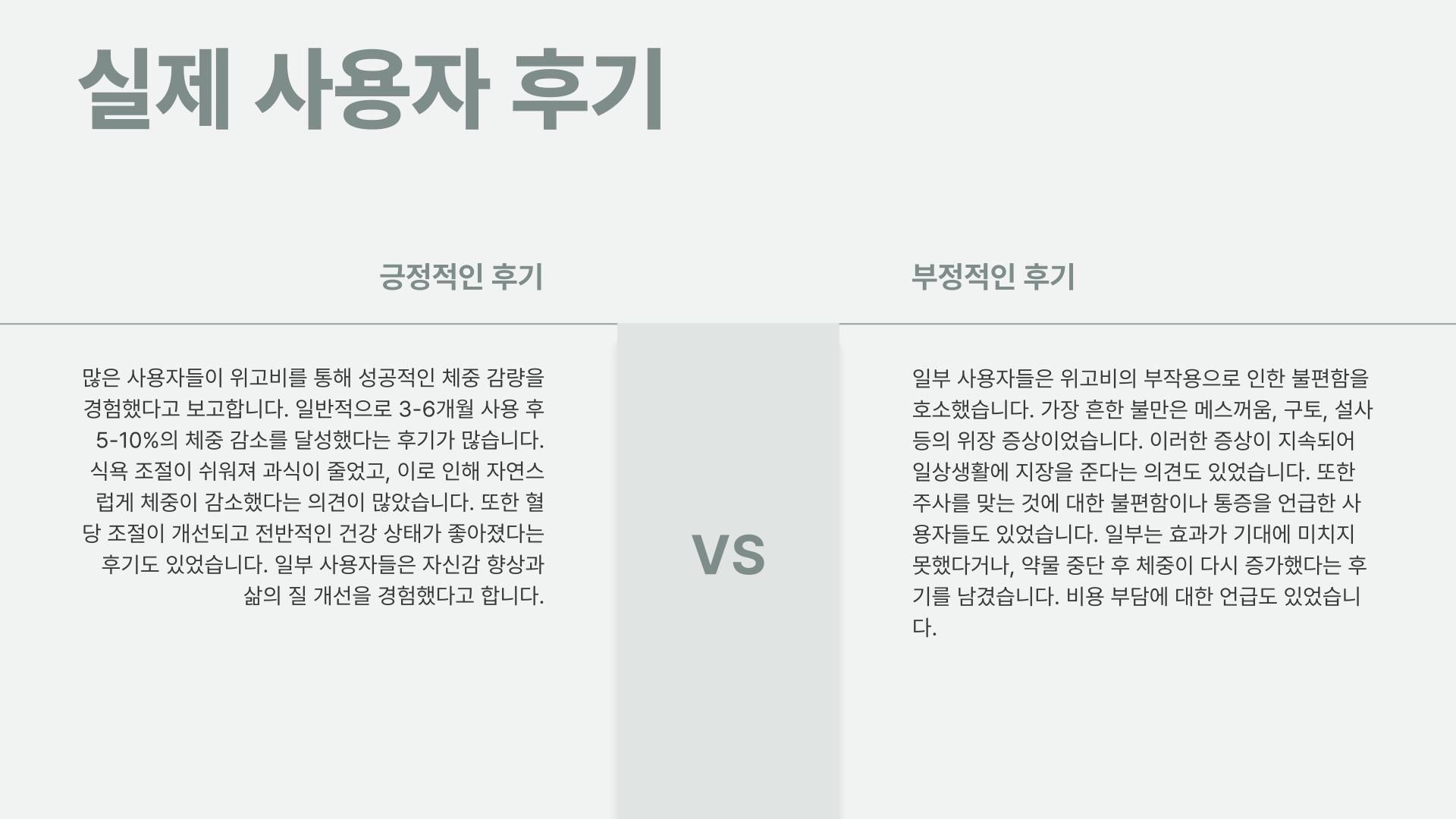 이러한 사항들을 고려하여 위고비를 신중하게 선택하고, 의료 전문가의 지도 아래 안전하게 사용하시기 바랍니다.
