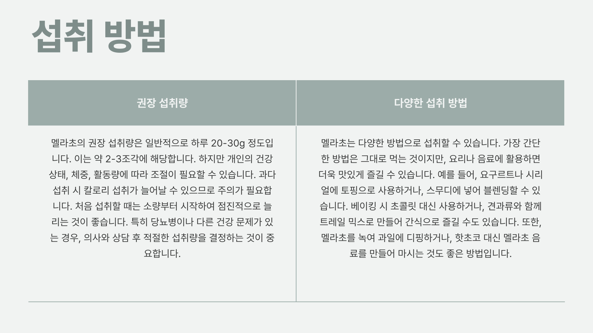 멜라초 섭취 방법